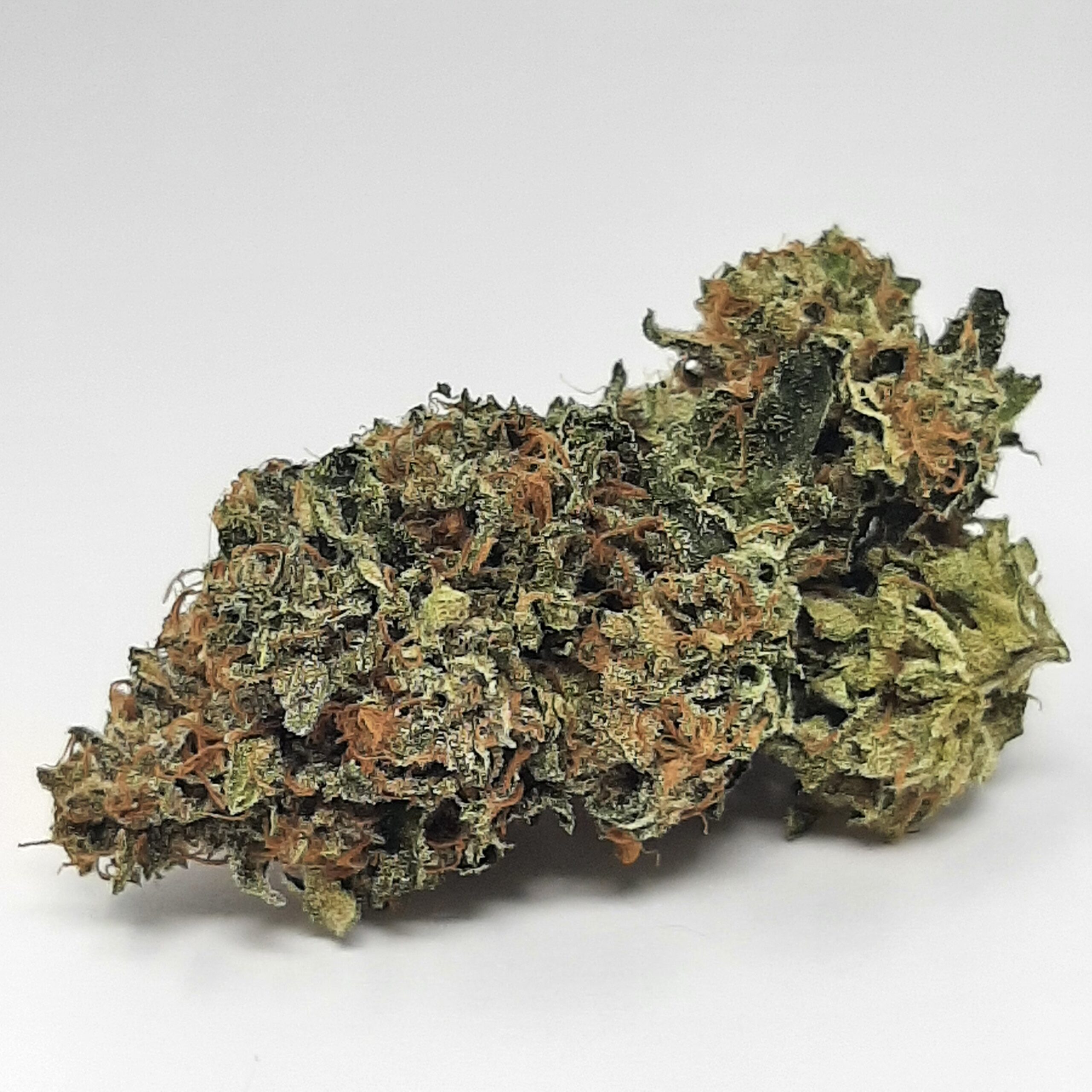 This bud has a super sweet and sour fruity berry flavor with a notable punch of mint upon exhale. The aroma follows the same profile, although with an earthy herbal effect that intensifies as the nugs are burned away. Bacio Gelato buds have small thick spade-shaped olive green nugs with dark purple undertones, vivid orange hairs and a coating of purple-tinted white crystal trichomes.