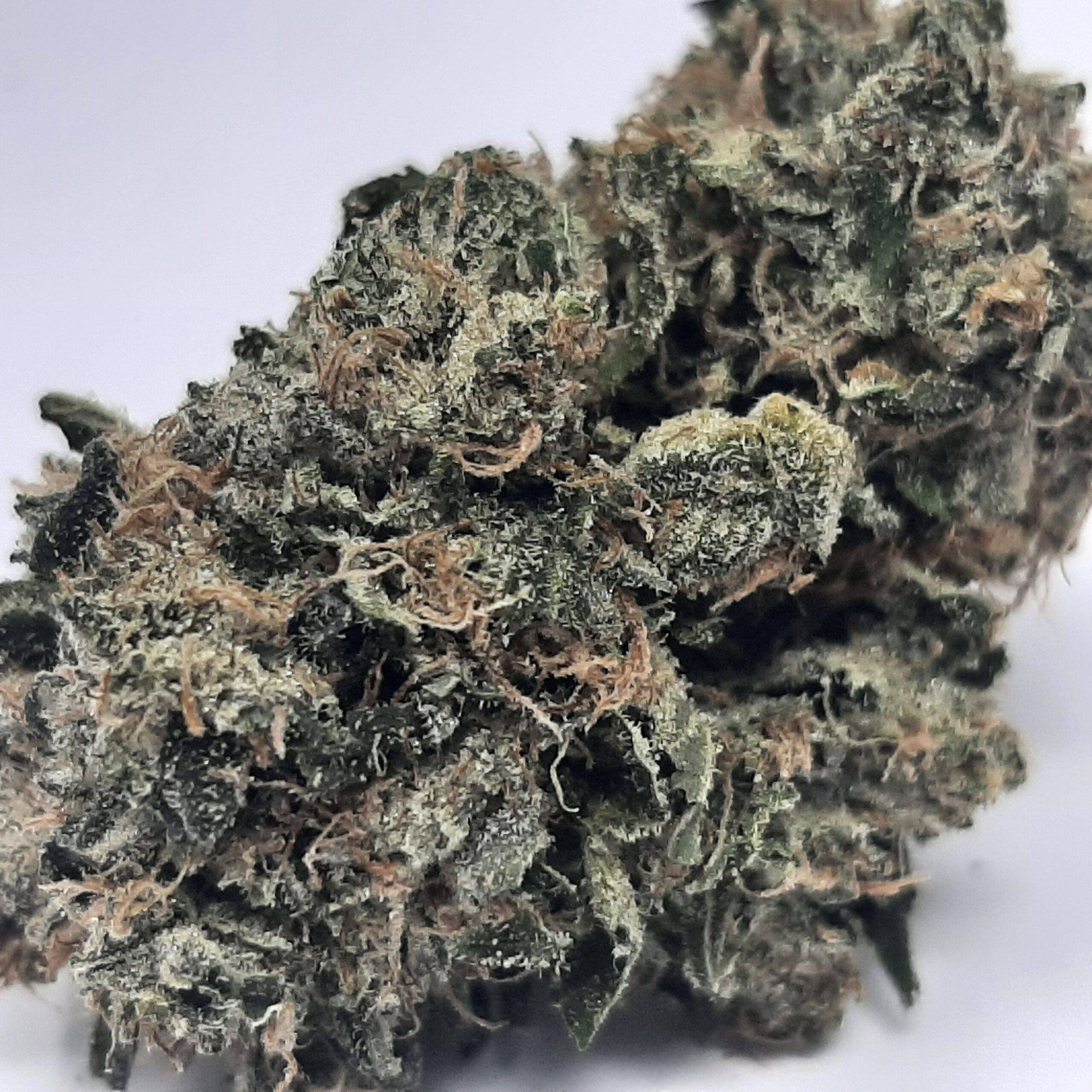 Blue Dream is a slightly sativa dominant hybrid (60% sativa/40% indica) strain that is a potent cross between the hugely popular BlueberryX Haze strains. This infamous bud boasts a moderately high THC level that ranges from 17-24% on average and a myriad of both indica and sativa effects. Users describe the Blue Dream high as having an immediate onset of an uplifting cerebral head high that leaves you completely motivated and focused with waves of creative energy that hit quickly and hard. This is accompanied by a mellow relaxing body high that leaves you warmed, numb, and completely pain free. Due to these potent combination effects, Blue Dream is said to be an ideal strain for treating patients suffering from conditions such as chronic stress, chronic pain due to injury or illness, mild to moderate cases of depression, and sleep disorders, including insomnia. Blue Dream has a delicious aroma of sweet blueberry pie and a taste of sugary sweet blueberries that stays on your tongue long after smoking. This bud has large dense yet fluffy popcorn-shaped bright neon green nugs with amber and blue hairs and rich blue undertones. These nugs are dusted with a fine layer of sandy milky white trichomes and sweet sticky resin.