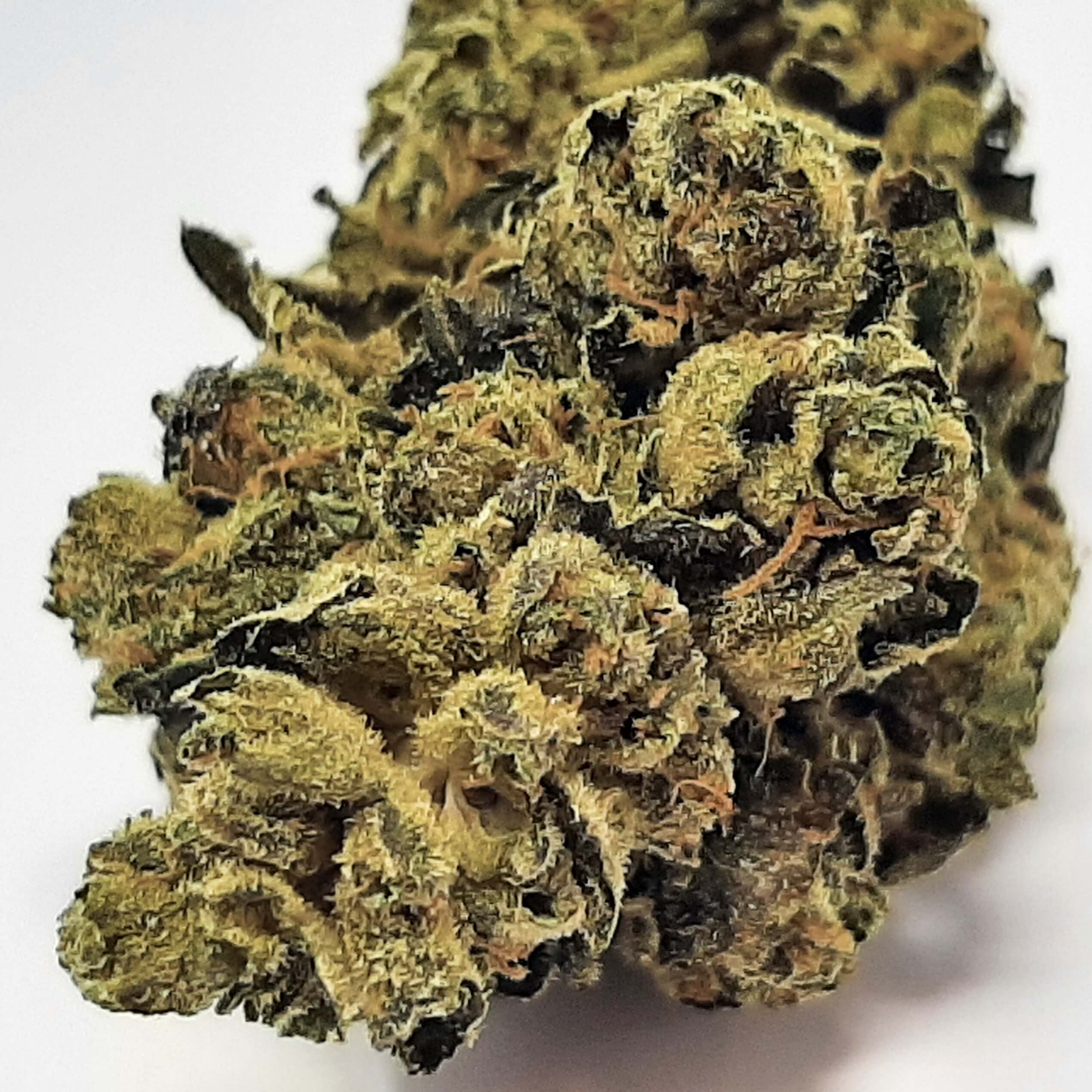 Captain’s Cake is an indica dominant hybrid (70% indica/30% sativa) strain created through crossing the classic Girl Scout Cookies and super potent White Fire OG strains. This powerhouse combination yields a bud that both tastes delicious and leaves you completely dazed for hours on end. The Captain’s Cake high hits you in the front of the head with a punch of happy euphoria almost immediately at the onset. As this effect expands, you’ll feel an influx of creative energy that’s very laid back in nature. These effects quickly turn relaxing, lulling you into a state of calm and ease without causing you to become too sleepy. Thanks to these effects and its powerful 18-19% average THC level, Captain’s Cake is often chosen to treat a variety of conditions including chronic pain, depression, chronic fatigue, insomnia, muscle spasms, and chronic stress. This bud has a sweet nutty vanilla cookie flavor with a sharp tinge of citrus on the exhale. The aroma is very sour and earthy with a lemon berry overtone that’s accented by a touch of nuttiness. Captain’s Cake buds have fluffy dense neon green nugs with bright orange hairs and a coating of tiny golden amber crystal trichomes.
