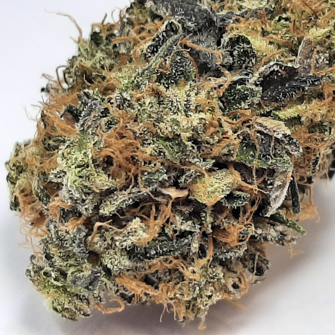 Death Bubba is an indica dominant hybrid (70% indica/30% sativa) strain created as a descendant of the hugely popular Bubba Kush strain. This dank bud boasts an insanely high THC level that ranges between 25-27% and effects that can end in an almost death-like sleep. Almost immediately after smoking, you’ll feel a wave of rushing focused energy wash over you that leaves you uplifted and motivated with tendencies towards having psychoactive experiences. As the high continues, you’ll be eased into a state of utter relaxation with deep introspection and spaciness that can cause you to become distant in social situations. Upon the comedown from the high, Death Bubba pulls you into a deep and peaceful undisturbed sleep that lasts for hours on end, giving you the appearance of being unwakeable. Death Bubba has an aroma of musky earthy pine and a taste of spicy lemon pine with a hint of pungent earth upon exhale. This bud has medium-sized dark forest green nugs with rich purple undertones and a spattering of fiery orange hairs. Each nug is completely covered with dark olive green leaves that are almost furry and have a thick layer of frosty sandy white trichomes.