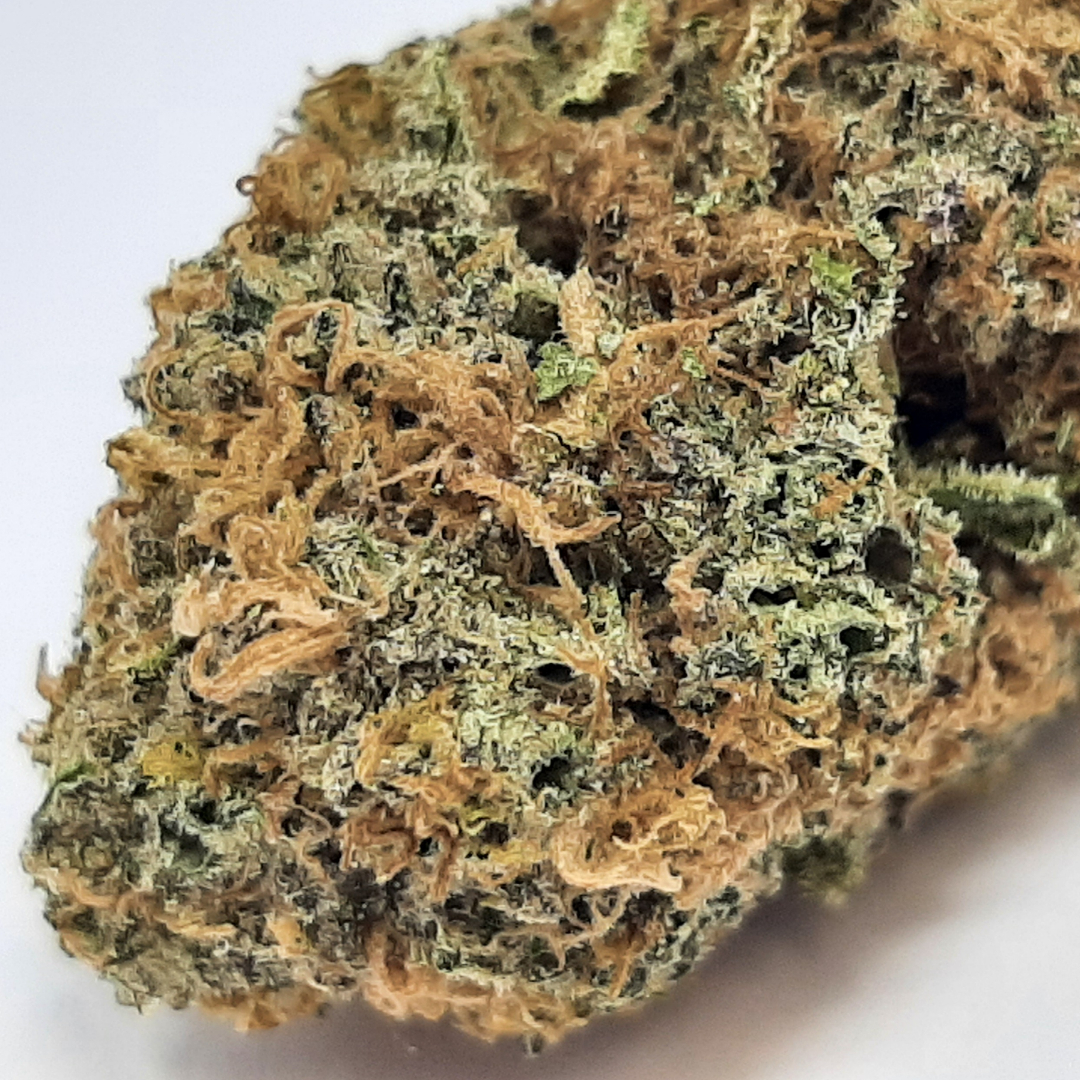 Gorilla Fuel is an evenly balanced hybrid strain (50% indica/50% sativa) created through crossing the classic Gorilla Glue #4 X Jet Fuel strains. Known for its insanely giddy and super-powered high, Gorilla Fuel is the perfect celebrity child for any hybrid lover. The high starts with a rush of euphoric heady effects, lifting the spirits to new heights of unfocused happiness. You’ll feel an influx of happy creativity that fills you with artistic inspiration that’s pretty unfocused and giggly, leaving you falling into uncontrollable fits of laughter for no apparent reason. As your mind lifts into this almost energizing and happy state, your body will start to settle into a relaxing physical buzz with a sharp pang of hunger coming soon after. With these effects and its super high 21-22% average THC level, Gorilla Fuel is often said to be perfect for treating conditions such as depression, appetite loss or nausea, mood swings and chronic stress. This bud has a spicy and peppery chemical diesel flavor with a super heavy pungent aroma to match. Gorilla Fuel buds have fluffy oversized grape-shaped olive green nugs with deep purple undertones, dark amber hairs and a coating of tiny dark amber crystal trichomes.