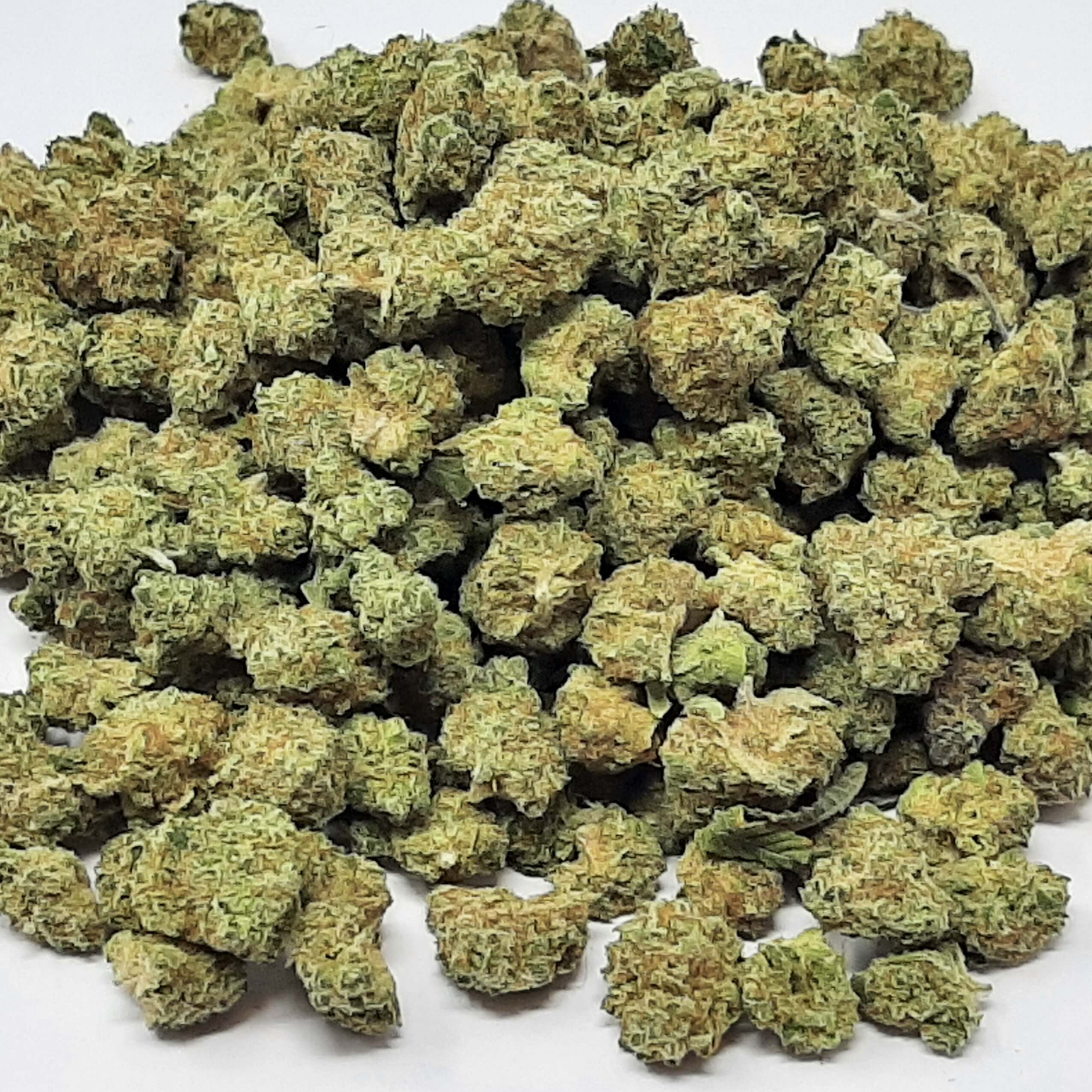 Honeydew is a sativa dominant hybrid strain (70% sativa/30% indica) created through crossing the classic Dirty Old SOG Super Silver Haze X Appalachia strains. Named for its amazing flavor, Honeydew is the perfect daytime bud for any sativa who’s looking for a quick boost. Like its namesake fruit, Honeydew packs a sweet and fruity melon flavor with hints of hazy flowers, fresh berries and woody pine, too. The aroma is just as delicious, almost like a bowl of freshly cut melon, berries and fruits in a woody bowl with a touch of hazy earthiness. The Honeydew high will have you feeling happy, sociable and creative for hours, with soothing yet lifted effects from start to finish. You’ll feel euphoric almost as soon as you exhale, free of any negative or racing thoughts. This is accompanied by a boost in creativity and sociability, both of which lend themselves well to any social situation at hand. A light physical tingle accompanies this cerebral boost, getting you up and moving. Combined with its high 21% + average THC level and 0-1% CBD level, these effects make Honeydew a great choice for treating those suffering from conditions such as chronic pain, nausea or appetite loss, depression, chronic stress and mood swings. This bud has oversized tapered spade-shaped minty green nugs with lots of vivid orange hairs and a coating of golden-white crystal trichomes.