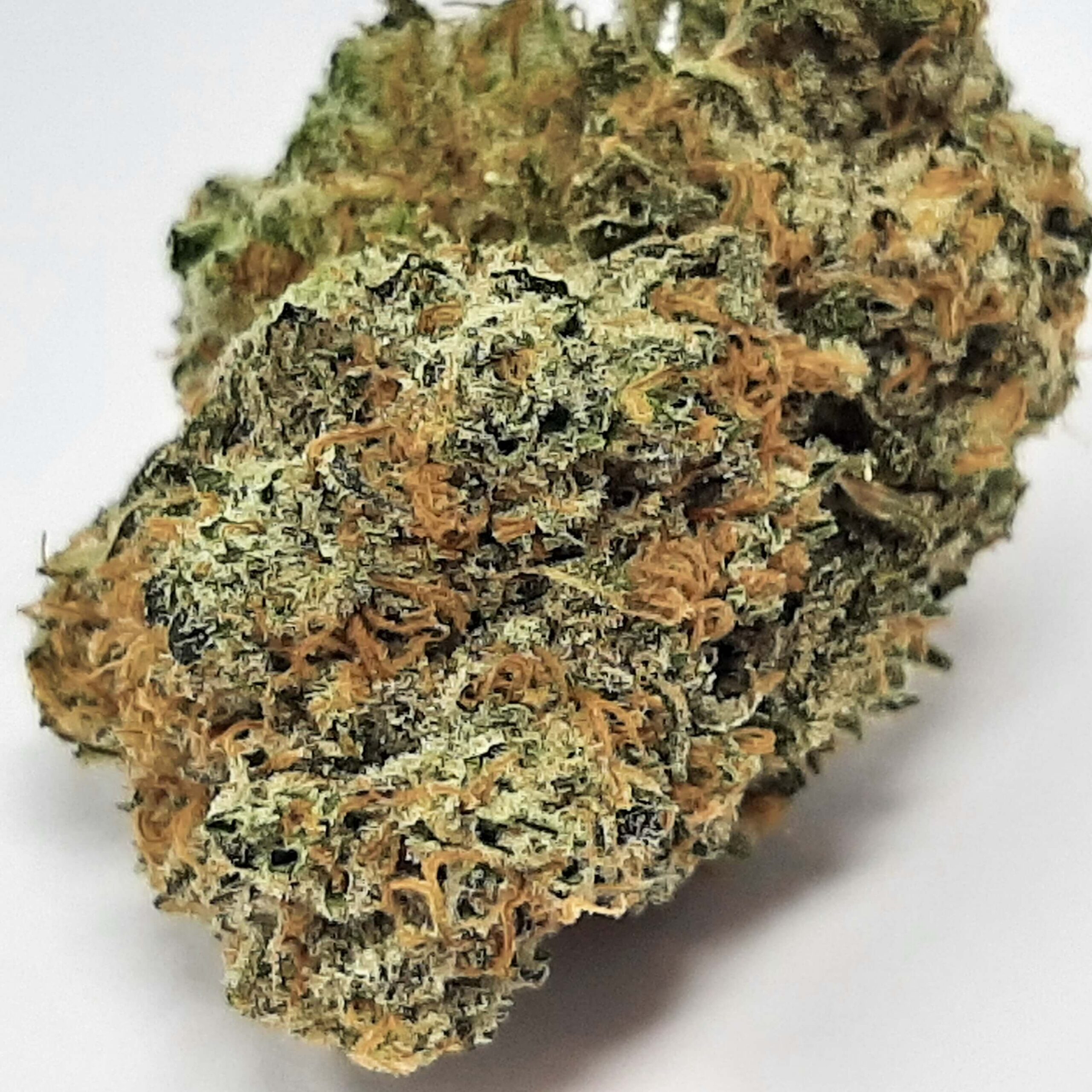 Orange Zkittles is a rare evenly balanced hybrid strain (50% indica/50% sativa) created through crossing the infamous Agent Orange X Zkittlez strains. Love a classic hybrid? In that case, Orange Zkittles is totally for you. This bud packs a full-bodied high that hits mind and body with the same unforgiving potency thanks to its super high 23-26% average THC level. The high starts with a rush of cerebral effects that fill your mind with a sense of happy energy and powerful creativity. As your mind lifts higher and higher, your energy will begin to fade away, leaving you still lifted yet pretty hazy and unfocused. A relaxing body high comes next, dropping you into a light state of couch-lock that won’t cause any sedation in the slightest. Rather, you’ll be immovable and kicked back while your mind soars higher and higher. Thanks to these effects and its high THC level, Orange Zkittles is often chosen to treat those suffering from chronic stress, depression, chronic fatigue, and migraines or headaches. This bud has a sweet and sour citrus herbal flavor with a rich fruity overtone. The aroma follows the same profile, with hints of sharp spices as the nugs are burned. Orange Zkittles buds have heart-shaped olive green nugs with thin orange hairs and a coating of sandy amber crystal trichomes.