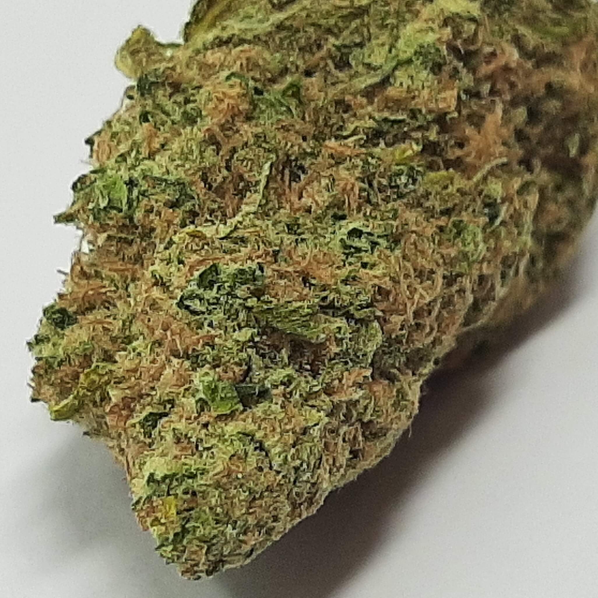 Runtz is an evenly balanced hybrid strain (50% indica/50% sativa) created through a delicious cross of the infamous Zkittlez X Gelato strains. Named for the iconic candy, Runtz brings on a super delicious fruity flavor with tropical citrus and sour berries galore. The aroma is very similar, although with a sharp spicy pineapple effect that turns slightly pungent as the sticky little nugs are broken apart and burned. The Runtz high comes roaring in a few minutes after your final toke, first hitting your head with a calming lift before spreading its tingly tendrils throughout the rest of your body. As the Runtz high expands, you’ll begin to feel a deeply calming effect spread through your limbs, leaving you totally sedated and couch-locked, immovable for hours and hours on end before you finally fall into a deep and peaceful sleep. Thanks to these effects and its super high 19-29% average THC level, Runtz is often said to be perfect for treating conditions such as insomnia, chronic pain, appetite loss or nausea and chronic stress or anxiety. This bud has dense grape-shaped olive green nugs with thin orange hairs, dark purple undertones and a coating of frosty tiny white purple-tinted crystal trichomes.