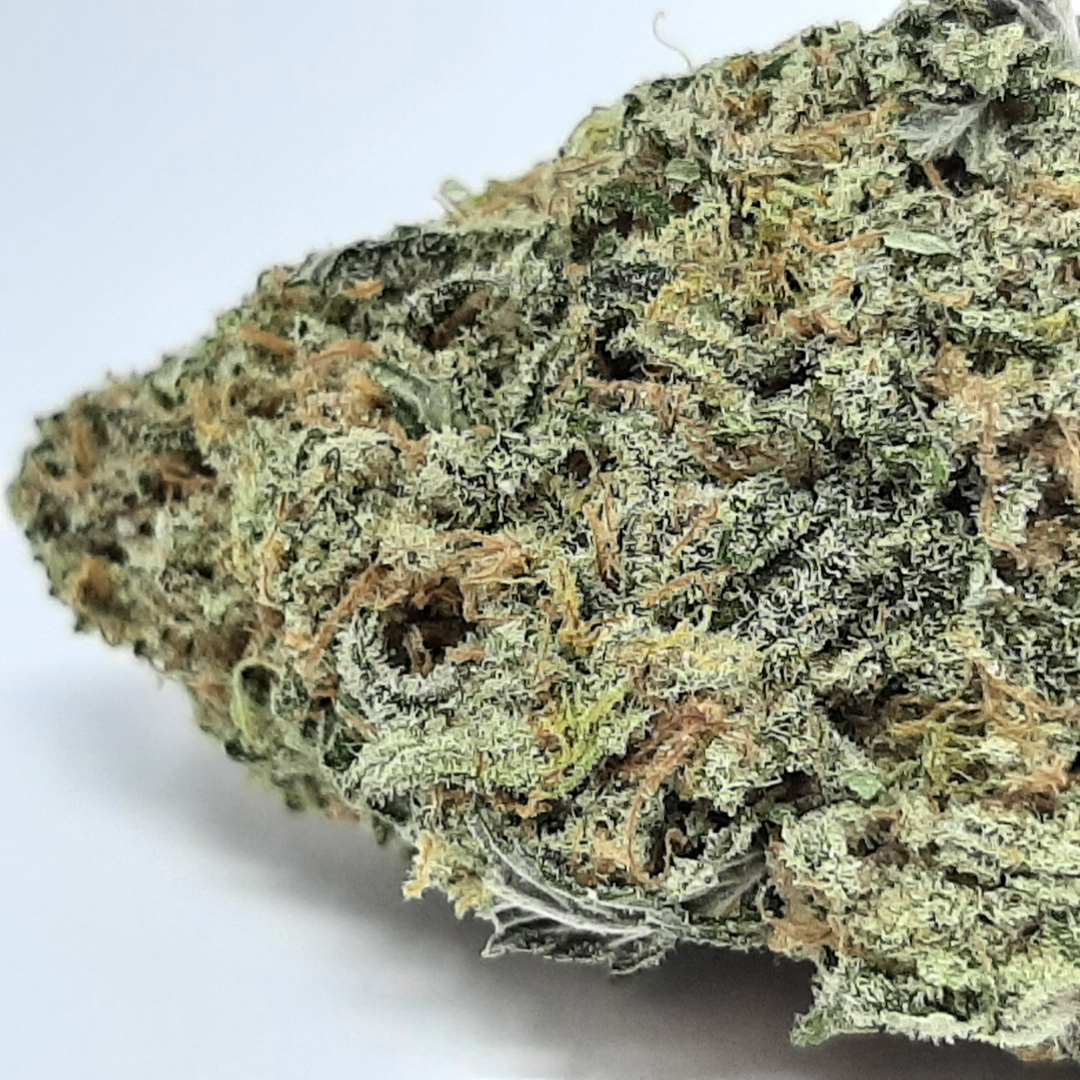 Super Lemon MAC, also known as “Super Lemon Miracle Alien Cookies,” is a heavily sativa dominant hybrid strain (90% sativa/10% indica) created through crossing the delicious Lemon Miracle Alien Cookies/Lemon MAC X Super Silver Haze strains. If you love a bright flavor and eye-opening high, Super Lemon MAC is totally made for you. This bud has a sharp sour citrusy lemon flavor that tingles the tongue and puckers the lips with each toke. The aroma is just as vibrant, with a spicy sour citrusy overtone that’s accented by touches of lemony earth as the nugs are broken apart and burned away. The Super Lemon MAC high is just as head-spinning as the flavor, with lifted effects that are perfect as a wake-and-bake. You’ll feel an immediate cerebral rush almost as soon as you exhale, filling your mind with a sense of high-flying energy and creativity that has you jumping on your to-do list with ease. As your mind soars higher and higher, you’ll feel any negative or racing thoughts fade away, replaced with happy sociability and artistic visions. With these heady effects and its super high 23-25% average THC level, Super Lemon MAC is often chosen to treat conditions such as chronic fatigue, depression, chronic stress, headaches or migraines and eye pressure or glaucoma. This bud has rounded dense bright neon green nugs with dark olive undertones, long thin orange hairs and a coating of frosty tiny white crystal trichomes.