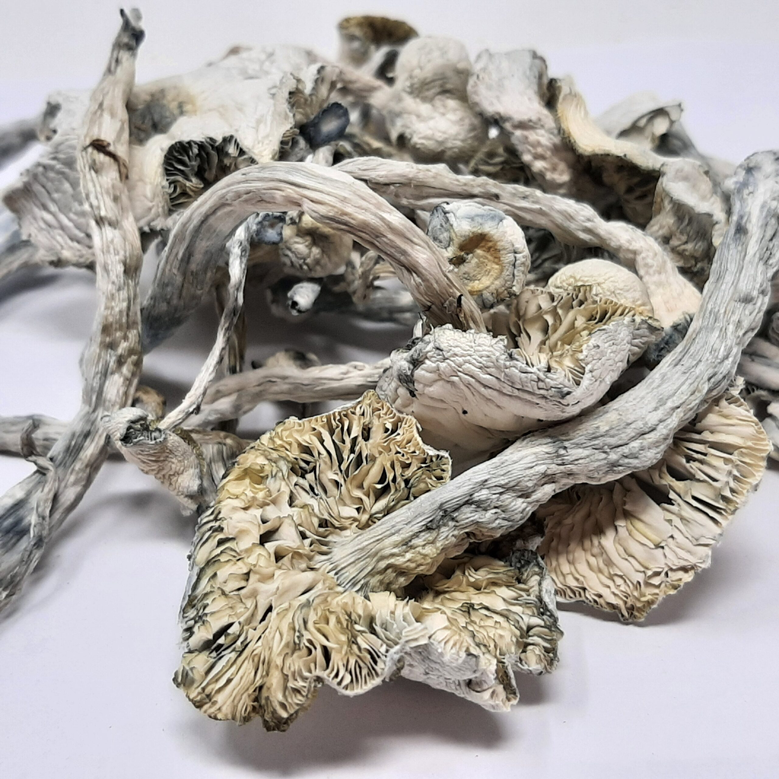 Albino Zilla Magic Mushrooms (Psilocybe Cubensis, Albino Zilla) is a representation of one of the new great strains created with the recent resurgence and interest in psychedelics and plant medicine. This variation of the P. Cubensis is a cross between a classic Albino A+ and Great White Monster. This true Albino strain is grown in near complete darkness.  The two Albino strains are combined to create a powerful and sturdy strain. It is unknown who created this strain but we are happy that with more interest in magic mushrooms we are seeing new and innovative strains. The Albino Zilla mushrooms are thick and sturdy. The colours are completely ghostly white with some dark bruising. The stems are shorter and the caps are relatively large. The caps are beautifully spread open. Expect high potency with good balance. Please note that each strain may have different effects depending on the person who consumes. The set and setting is very important in what type of journey you will embark on. The amount you consume is also very important in the type of experience you will have. Always remember these are sacred plant medicines, use with respect and she will teach you many things.