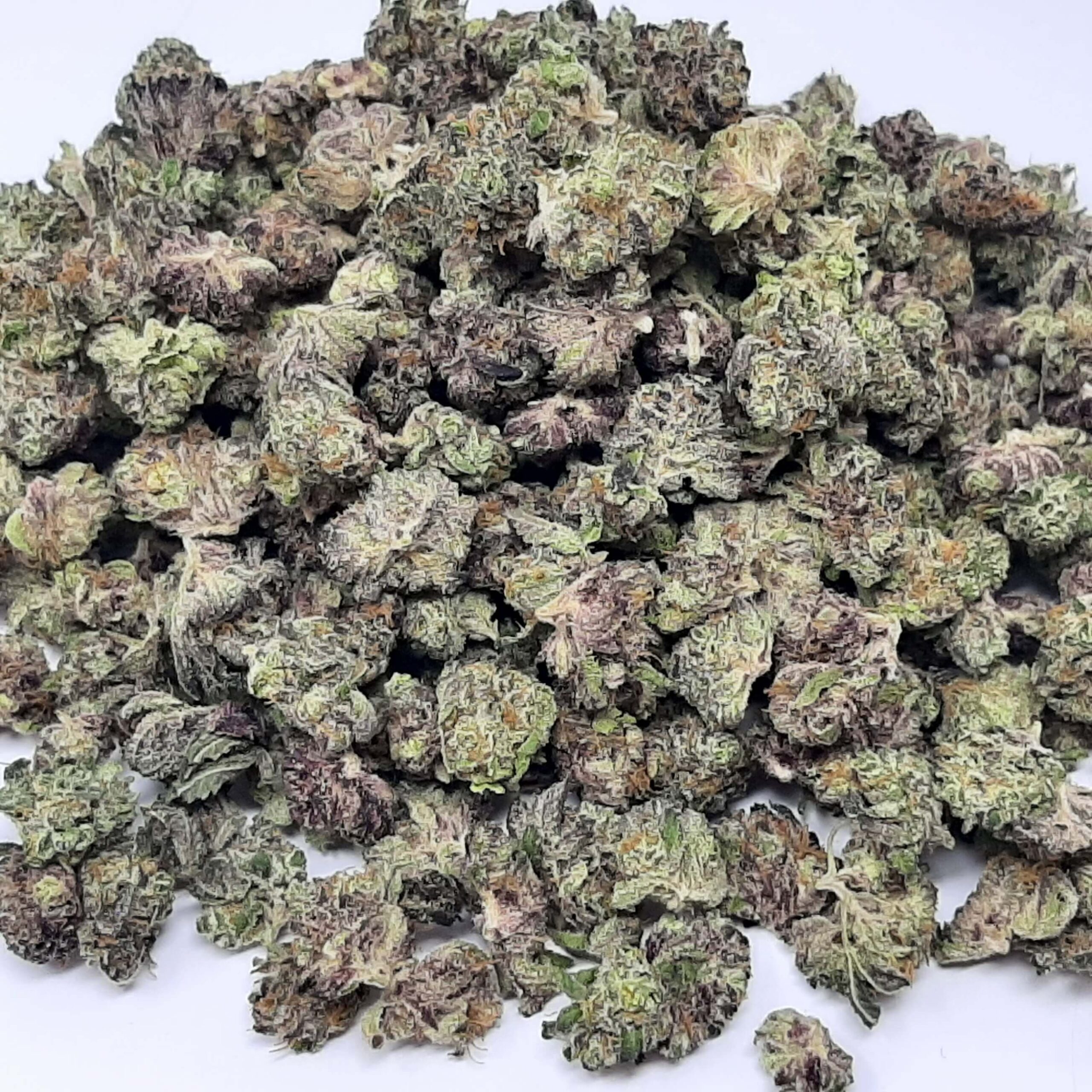 Blackberry Trainwreck, also known as “Blackberry Wreck,” is a rare evenly balanced hybrid (50% indica/50% sativa) strain created through crossing the classic Blackberry Kush and Trainwreck strains. If you love either of its parents, you’re going to love this tasty bud! Blackberry Trainwreck brings on the flavors of Blackberry Kush and combines it with the beloved mind-melting effects of Trainwreck. Blackberry Trainwreck has a sweet berry flavor with hints of pungent kush on each spicy exhale. The aroma is of fresh earth and dank spicy berries with a musky twist. The Blackberry Trainwreck high creeps up pretty slowly after your first few tokes, lifting you into a state of happy hazy bliss that’s great for creativity. You won’t be motivated or able to focus much in this state – rather, your mind will wander happily through hazy thought as your body is washed over with a sleepy relaxation. In combination with its high 18-20% average THC level, these effects make Blackberry Trainwreck perfect for treating conditions such as nausea, insomnia, chronic stress, depression, and chronic pain. This bud has chunky dense conical dark olive green nugs with rich purple undertones, bright amber hairs, and matching crystal trichomes.