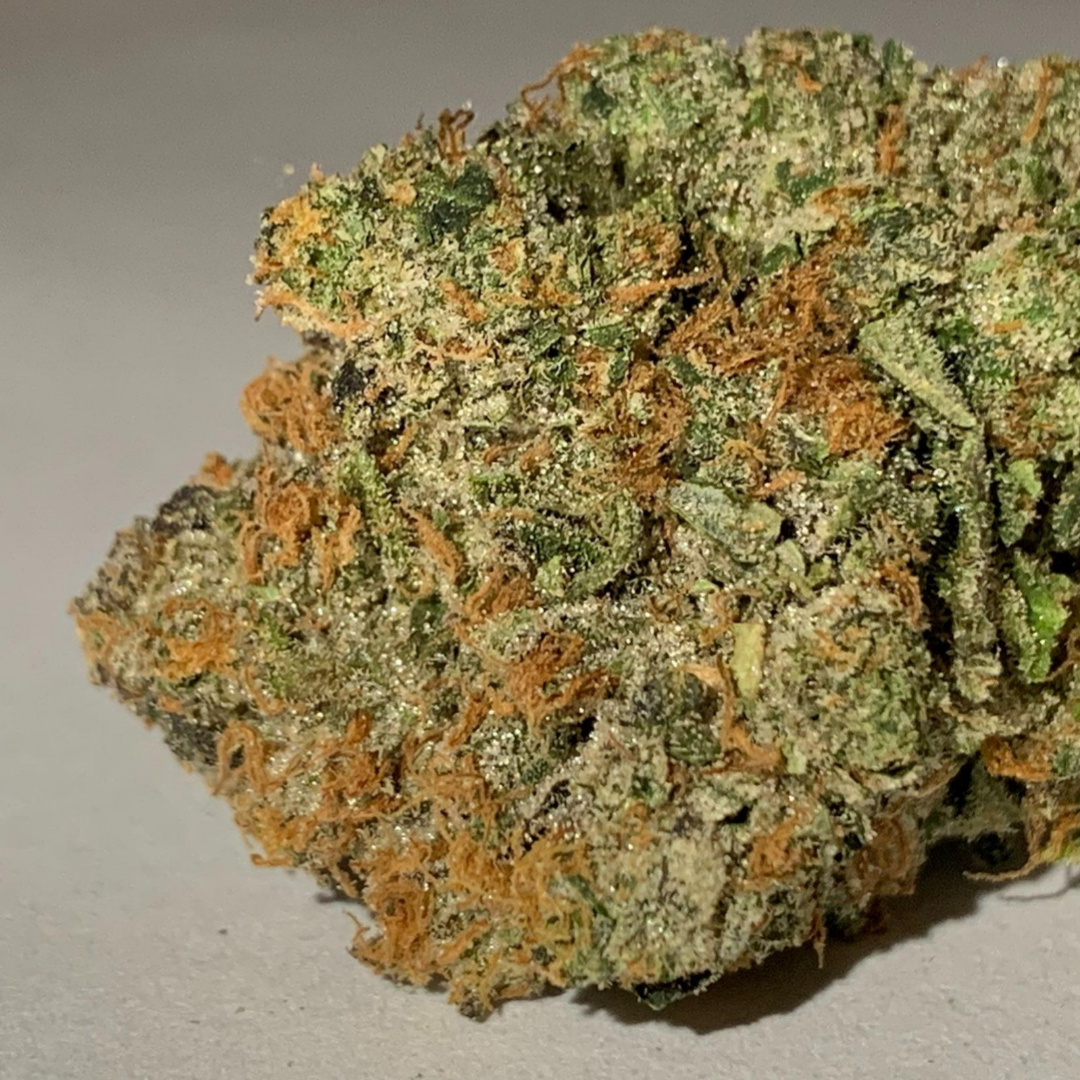 Blissful Wizard is a hybrid strain created through a cross of the powerful Captain’s Cookies X Girl Scout Cookies strains. It won first place for the Best Non-Solvent Hash at the 2015 High Times SoCal Cannabis Cup. This tasty bud is a favorite to use to make hash because of its powerful effects and enticing flavor. The Blissful Wizard high is just as happy as you’d imagine, with a blissful euphoric onset that launches your mind into a hazy state of complete happiness. As your mood builds and builds you’ll find yourself becoming more and more talkative with no real filter on what you say. You may succumb to uncontrollable fits of laughter at the slightest hint of humor that can leave you gasping for breath. These cerebral effects are anchored by a relaxed body buzz that rids you of any pain or spasms. Because of these effects and its insanely high average THC level of about 34%, Blissful Wizard is a favorite bud for treating conditions such as chronic pain, inflammation, chronic fatigue, muscle spasms or tremors, and nausea. This bud has a delicious flavor of sweet apple with a hint of floral earth that is surprisingly pungent upon exhale. The smell is of sweet granny smith apples with an earthy tinge. Blissful Wizard buds have small to medium-sized round pebble-shaped forest green nugs with fiery orange hairs and a frosty thick coating of crystal white trichomes.