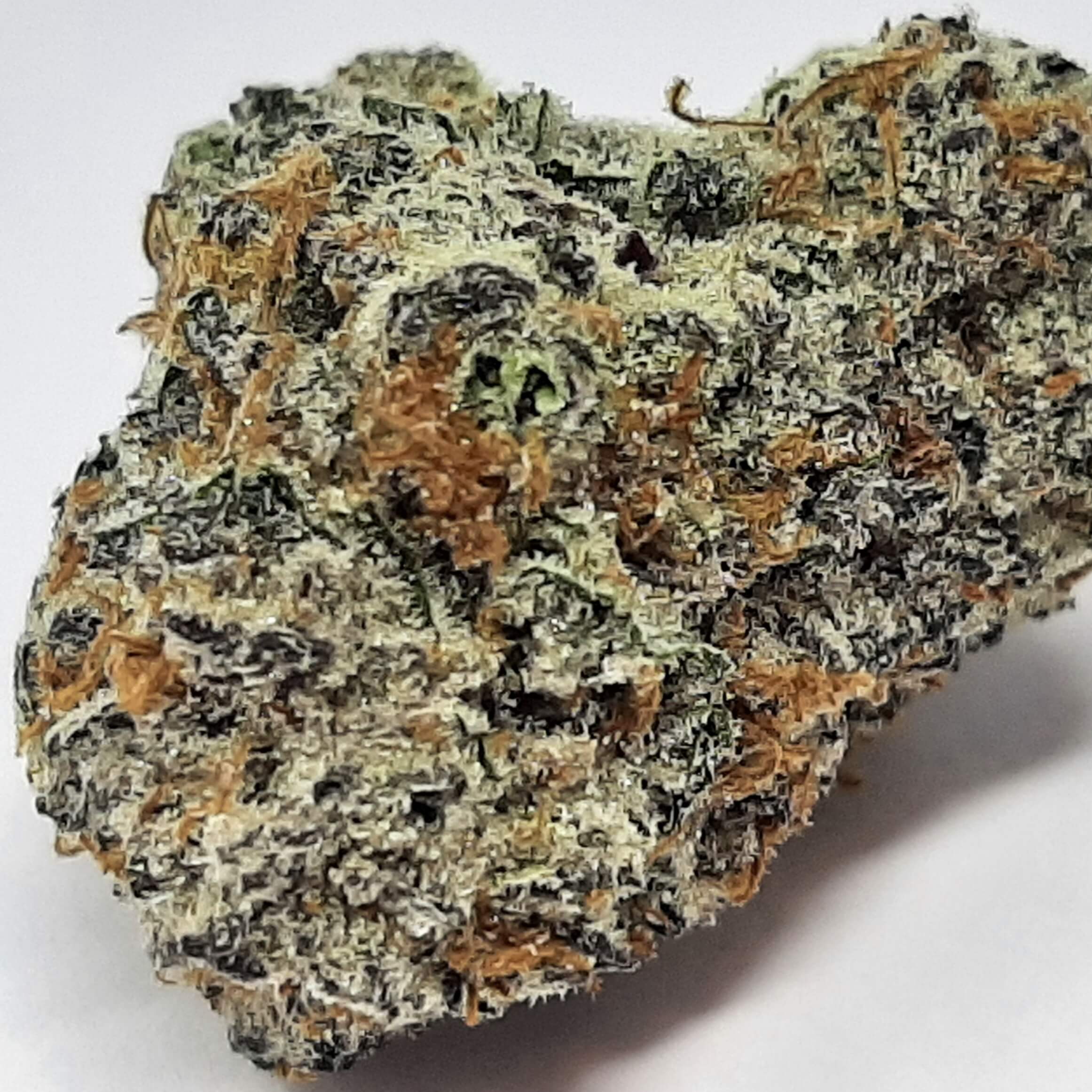 There is some dispute over the true parents of this indica-dominant award winner: Some sources claim they’re F1Durb (an indica-dominant descendant of Durban Poison) and Florida OG (a little known indica). Others say they’re Blueberry and Girl Scout Cookies. Whatever its origins, Blue Cookies has a sativa/indica ratio of between 10:90 and 30:70. That makes for a potent body buzz, although the sativa genes also provide an energized cerebral effect. Use this strain to treat anxiety, low mood, headaches, irritability, and persistent physical pain. Blue Cookies won the Cannabis Cup in the medical hybrid category based largely on its whopping THC content, measured at more than 28%. The record holder is still less than 30%, which means this strain is one of the strongest on the market. CBD, on the other hand, makes up less than 2% of this plant’s cannabinoid content, so Blue Cookies shouldn’t be used as an exclusive treatment for seizures or other health problems that respond to CBD. As the name suggests, this strain’s dense nugs have a dark bluish tint, as well as a thick layer of resinous crystals on the surface. The flavor is sweet and smooth, with notes of orange, earth, and candy. The smell is sweet and reminiscent of cookies. Blue Cookies is popular on the West Coast but much harder to find in other parts of the United States.