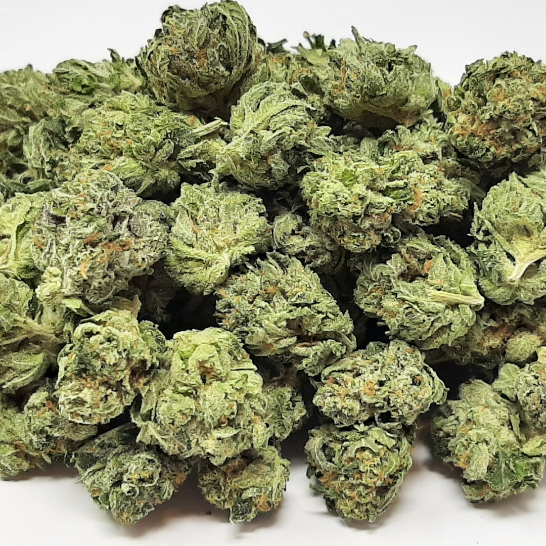 Bubba Kush, also known as “BK,” “Bubba” or “Bubba OG Kush,” is an indica dominant hybrid strain (80% indica/20% sativa) with unknown parentage, although it is thought to be an Afghani X OG Kush cross. A favorite of breeders and patients alike, Bubba Kush packs a head-spinning high that will leave you flying for hours and hours on end. It starts with a subtle boost of the spirits, filling your mind with happiness that leaves you with no room for negative or racing thoughts. This heady happiness will have you feeling unfocused and slightly sleepy sometimes. A soothing body high accompanies this cerebral lift, filling you with a sense of calm that has you kicked back and pain-free for hours on end. With these effects and its high 14-25% average THC level, Bubba Kush is often chosen to treat those suffering from conditions such as mood swings or depression, cramps or muscle spasms, chronic stress, and chronic pain. This bud has a slightly sweet and hashy flowery coffee flavor with touches of rich spicy chocolate. The aroma is of earthy hash and mocha coffee with touches of spicy flowers to it, too. Bubba Kush buds have oversized and airy heart-shaped dark olive green nugs with long thin bright orange hairs and a coating of tiny white crystal trichomes dripping with sweet sticky resin.