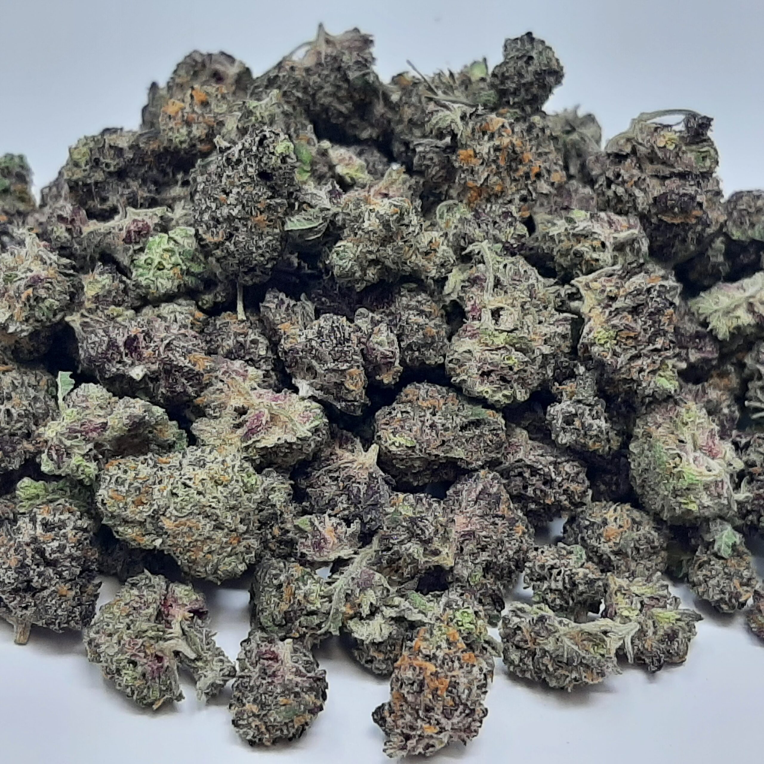 Grape Gorilla Glue is an indica dominant hybrid strain (70% indica/30% sativa) created through crossing the powerful Gorilla Glue #4 X Vino OG strains. An amazing child of this powerful combination, Grape Gorilla Glue offers the delicious flavors of its parent strains alongside amplified effects and potency that will leave both mind and body spinning. Like its name suggests, Grape Gorilla Glue has a sweet and fruity grape flavor that’s accented by spicy tobacco and earthy pepper. The aroma is surprisingly creamy and buttery with a peppery grape overtone accented by spicy chemicals. The Grape Gorilla Glue high will settle in pretty quickly, taking on the brain with a heavy sense of lifted relaxation before settling into the body. You’ll find your mood boosted as you’re filled with a happy euphoria that’s hazy yet blissful. At the same time, your body will begin to settle into a deeply relaxing physical state that has you feeling kicked back and pretty sedated at times. Thanks to these sleepy effects and its super high 20-36% average THC level, Grape Gorilla Glue is often said to be perfect for treating conditions including chronic pain, depression or mood swings, headaches, insomnia and arthritis. This bud has fluffy, grape-shaped olive green nugs with purple undertones, sparse thin orange hairs and tiny, purple-tinted white trichomes.