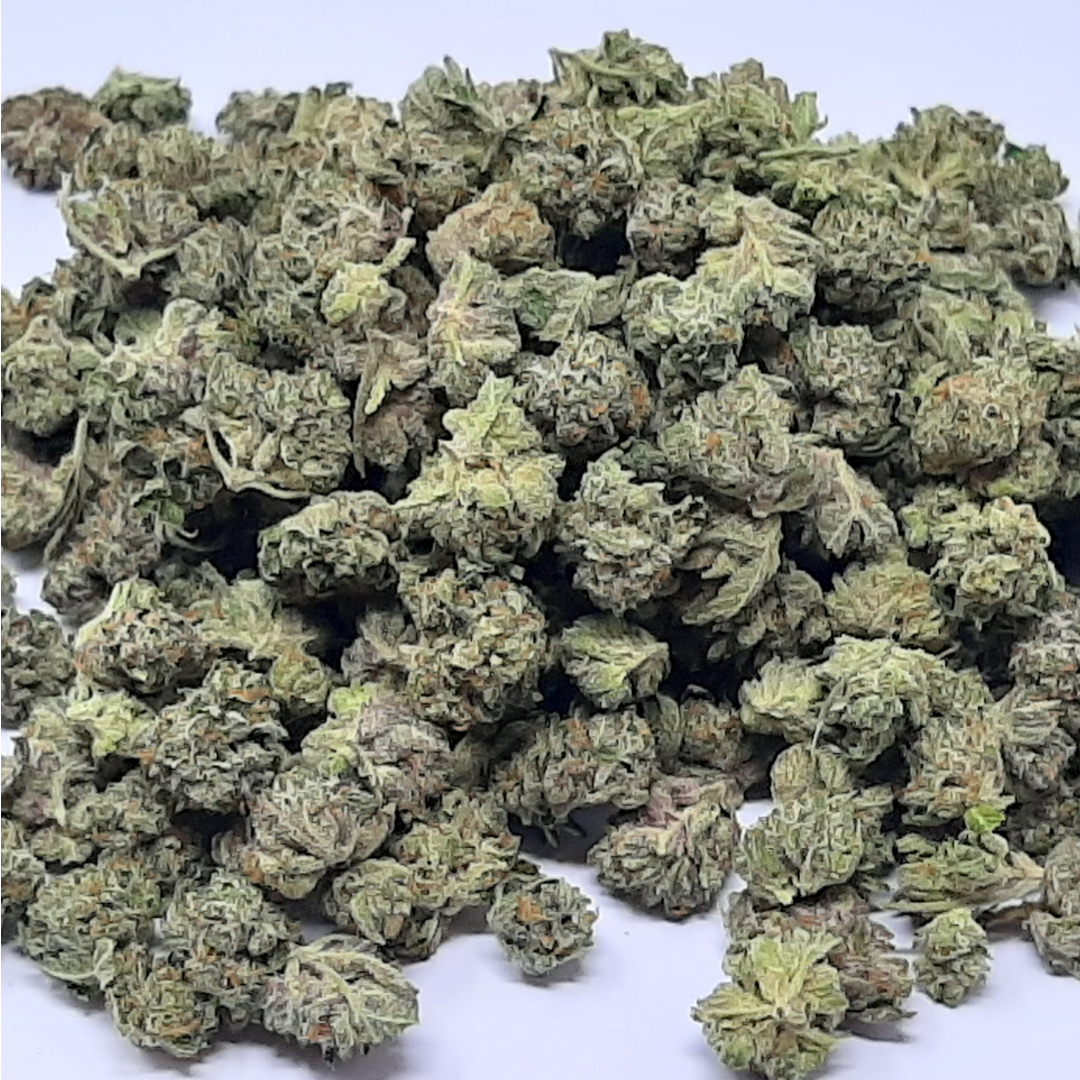Grease Monkey is an indica-dominant hybrid strain created through crossing the classic Gorilla Glue #4 with the delicious Cookies & Cream strain. This potent bud brings on the powerful effects and highly addictive flavor, flawlessly fusing those of its parent strains. With each rich inhale comes flavors of nutty vanilla and sweet skunky diesel. The aroma is just as delicious with an earthy pungency accented by sugary skunky diesel and a touch of vanilla. The Grease Monkey high is a creeper, building up behind the eyes before suddenly taking hold. You’ll suddenly feel a slam to the head of euphoric relaxation that lulls you into a mental state of calm and haze. This effect will quickly become sleepy, easing both mind and body into a completely sedated state that’s calming and relaxing. Thanks to these effects and its super high 25-27% average THC level, Grease Monkey is the perfect choice to treat conditions such as chronic pain, appetite loss or nausea, insomnia, headaches or migraines, and inflammation. This bud has fluffy tapered forest green nugs with sparse orange hairs and a coating of tiny clear crystal trichomes.