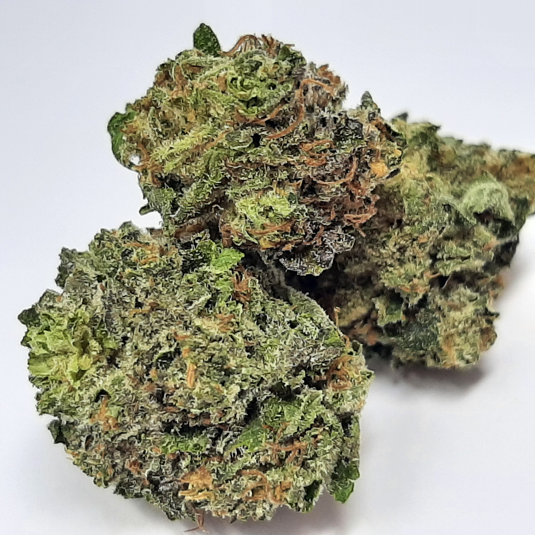 Rockstar, not to be confused with its cousin “Rockstar OG” strains, is a indica dominant hybrid (70% indica/30% sativa) strain created through a cross of the popular Rock Bud X Sensi Star strains. The Rockstar high is characterized by strong-hitting effects powered by a 14-19% average THC level without the sedation that typically comes with an indica parent. The Rockstar high starts with a cerebral head rush a few minutes after toking that leaves you uplifted and extremely happy with active tendencies and motivation. As this powerful head high builds, you’ll slowly feel a creeping body buzz wash over you that leaves you completely relaxed in every single muscle, leaving you helplessly couch-locked and in a state of pure bliss. Despite these powerful muscle-relaxing effects, Rockstar surprisingly won’t leave you sedated in the least bit. Because of these powerful effects, Rockstar is said to be perfect for treating chronic pain, muscle spasms or tremors, inflammation, and mild to moderate cases of depression. This bud has an aroma of spicy grapey earth with a hint of skunky pungent herbs and a taste of spiced mulled wine with a pungent slightly skunky exhale. Rockstar buds have medium-sized dense and lumpy dark olive green spade-shaped nugs with rich purple undertones, fiery orange hairs, and frosty trichome covered purple leaves.