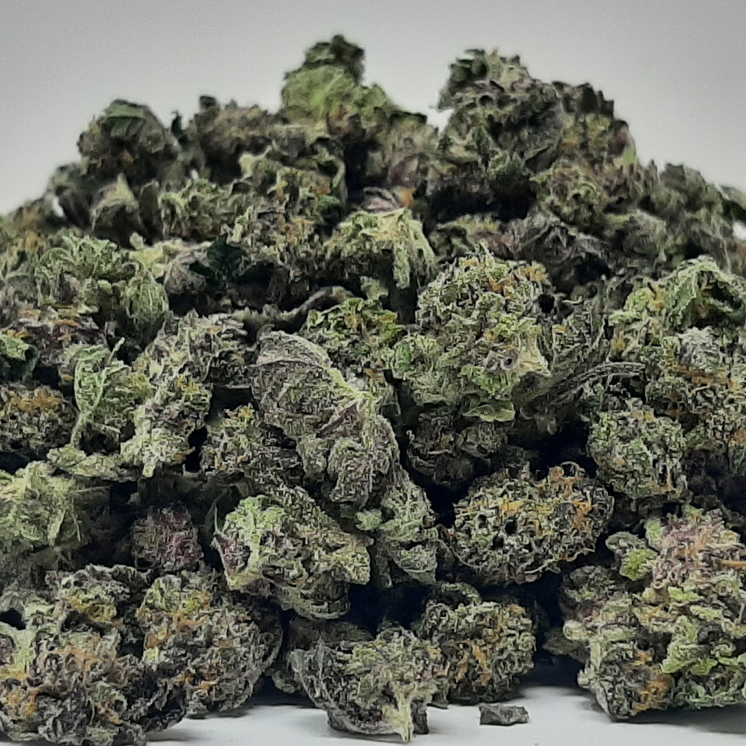 Watermelon Zkittlez is an indica dominant hybrid strain (70% indica/30% sativa) created through crossing the delicious Zkittlez X Watermelon strains. If you’re after a bud that actually tastes like its name sounds, look no further. Watermelon Zkittlez packs a mouthwatering sweet citrus and watermelon flavor into each and every earthy toke. The aroma is of earthy herbs and rich fruity citrus with a heavily sour overtone that turns slightly pungent the more the nugs are burned. The Watermelon Zkittlez isn’t quite as bright as the flavor, with effects that are best-suited for a lazy night at home rather than one spent off the couch. The high starts with a rush of cerebral effects that smash into your head with giddy and unfocused euphoria. As your mind soars higher and higher, your body will begin to settle into a deeply relaxing state, keeping you anchored as the head rush continues to rampage. Thanks to these cerebral effects and its high 25% + average THC level, Watermelon Zkittlez is said to be perfect for treating conditions such as mood swings, chronic stress or anxiety, neuropathy and chronic pain. Watermelon Zkittlez buds have heart-shaped dark olive green nugs with rich purple undertones, sparse orange hairs and a coating of tiny purple-tinted white crystal trichomes.