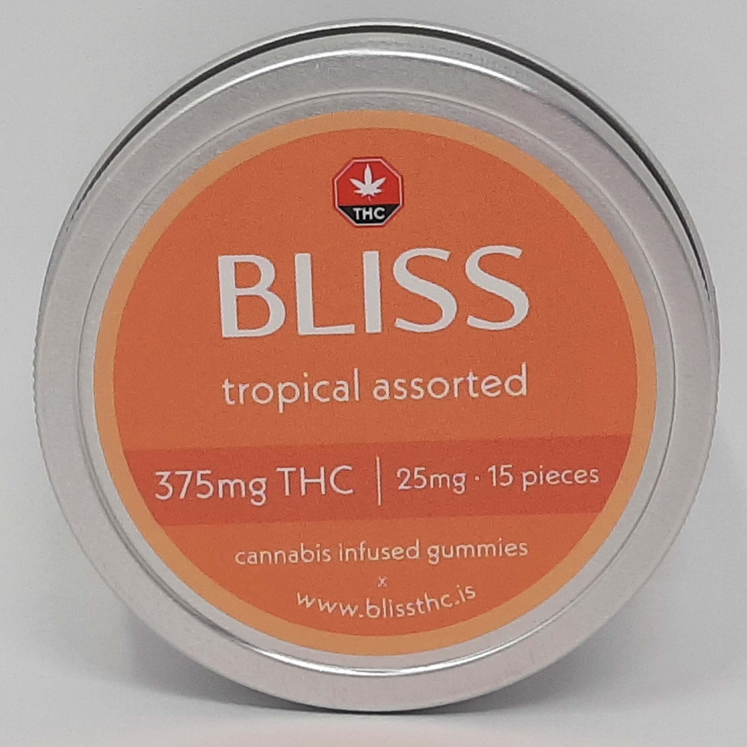Bliss Party Mix Gummies 375mg THC are unreal! You are one bite away from paradise with these sweet treats. Each colorful tin holds 15 cannabis-infused gummies, for a total of 375 mg THC in each tin. Pop one of these easy-to-dose treats at any time of the day!