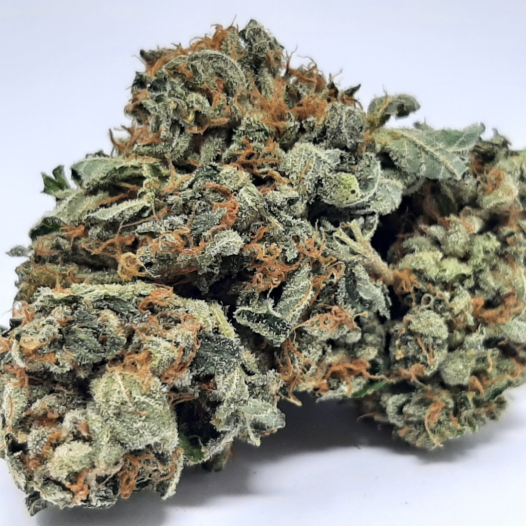 Watermelon Kush, also known as “Watermelon” or “Watermelon OG,” is an indica dominant hybrid strain (80% indica/20% sativa) created through an unknown combination of other fruity hybrid strains. Although its exact heritage is kept a closely guarded secret by its original breeders, Watermelon Kush is often sought after for its mouthwatering watermelon-y flavor and soothing indica heavy high. Like its name suggests, this bud has a sweet and fruity watermelon flavor with touches of tropical fruits to it, too. The aroma is very similar, with a fruity watermelon overtone accented by hints of spicy hash, earthy herbs and tropical fruits. The Watermelon Kush high is just as delicious, with a relaxing overtone that will soothe both mind and body for hours on end. Your brain will feel lifted with a happy sense of calm that’s essentially free of any thoughts whatsoever. As your mind lifts, your body will settle further and further into the couch, leaving you fully relaxed from head to toe and pretty immovable at times. With these effects and its high 20-25% average THC level and 0-1% CBD level, Watermelon Kush is often chosen to treat chronic stress, insomnia, appetite loss or nausea and depression. This bud has fluffy and dense heart-shaped minty green nugs with lots of thin orange hairs and a coating of tiny, golden amber crystal trichomes.